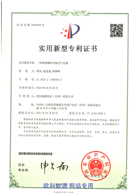 实用新型专利证书(一种强制循环空温式气化器)